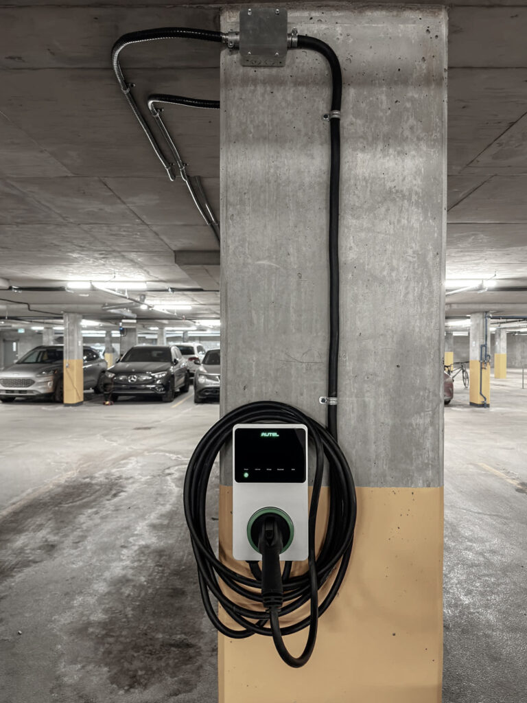 Installation de bornes de recharge pour véhicules électriques dans les espaces commerciaux.